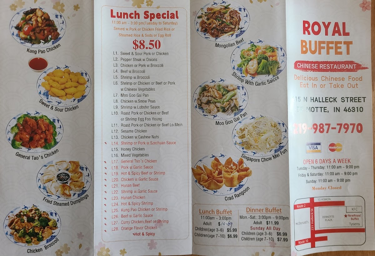 Welcome to Royal Buffet - De Motte, a culinary treasure located at 415 N Halleck St, De Motte, IN. This buffet offers an extensive menu featuring delightful dishes that celebrate the art of Chinese cuisine.