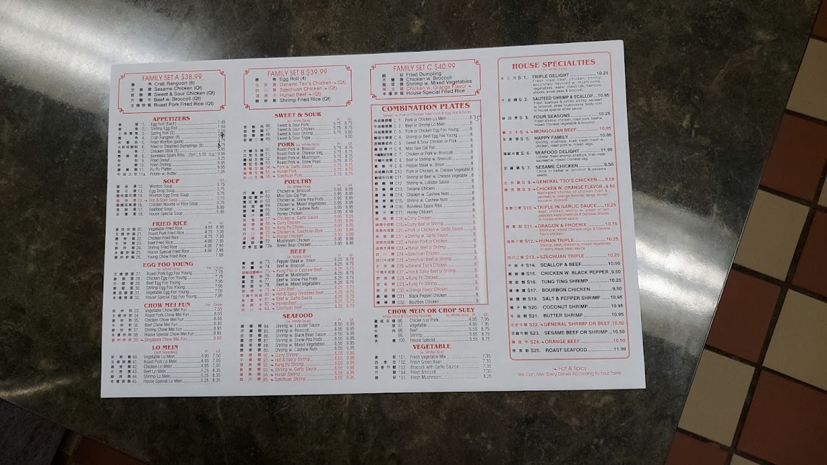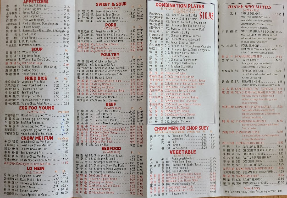 Indulge in their signature Sweet & Sour options, including Sweet & Sour Pork and Sweet & Sour Shrimp, all reasonably priced. The Pork selections, like Hunan Pork and Szechuan Pork, stand out for their bold flavors. For those craving noodles, their Chow Mein and Chop Suey choices, such as the House Special, are sure to impress.